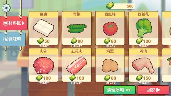 当冰箱里的食材不足时,玩家可以去超市购买所需的食材。