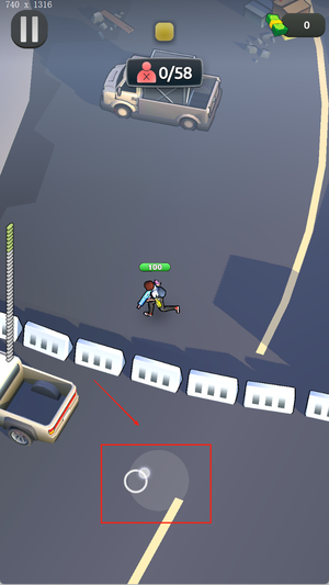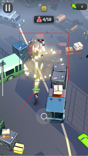 2、下侧控制角色移动与躲避,右侧点击瞄准射击或使用道具,在关键时刻释放技能提高生存能力。