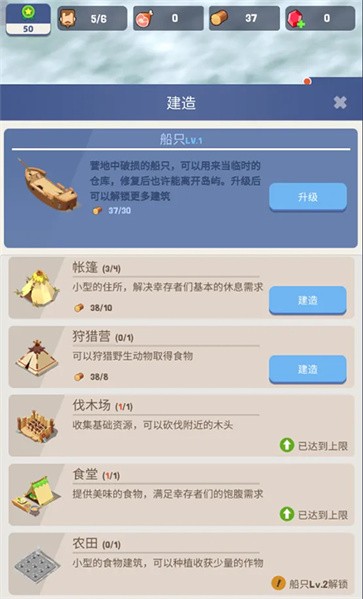 3、点击界面中间的“建造”功能,能根据当前需求去建造各种东西。