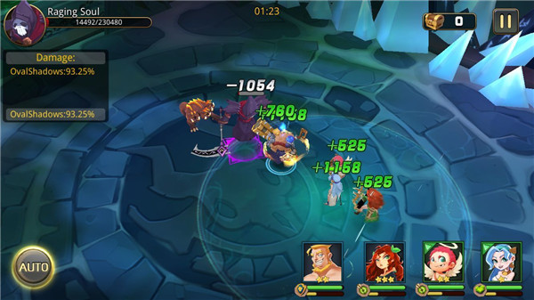 3、PVE战斗:采用四英雄阵容的整体操作模式,简单易上手;战斗节奏主导游戏进程,玩家可通过英雄走位与集火操作调节节奏,充分感受操作带来的乐趣。