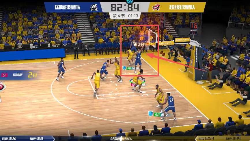 4、观察球员上篮动作及防守情况,关注比分变化和球员数据实时更新情况。