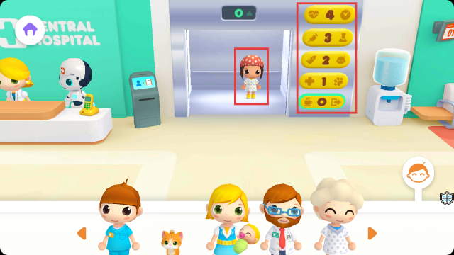 1当进入医院相关的场景界面后,你可以从界面下方的角色选择区域里挑选包括医生在内的任意角色使用。如果想要让这个角色选择区域暂时不显示,点击一下界面右侧的笑脸形状图标就可以实现隐藏效果了。