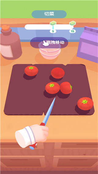 3、玩家可以按住屏幕左右来回移动进行切菜。