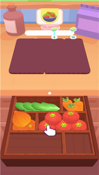 2、点击指定的蔬菜,放到菜板上。