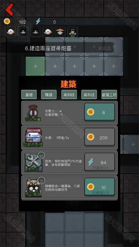 4、我们可以在门旁边放4个炮台,如果鬼来的快则可以优先购买炮台,并且刚开始鬼等级很低,我们炮台伤害很高。