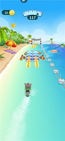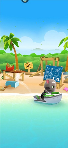 游戏的主赛场分布在五座迷人的热带岛屿上,它们分别是安吉拉的海滨度假村、狗狗本的科学实验室、金杰猫的沙堡、汉克狗的冲浪小屋以及汤姆猫的金银岛。这些岛屿的景致都格外赏心悦目,再搭配上游戏里酷炫的视觉设计,让水上驾乘的体验更加精彩。