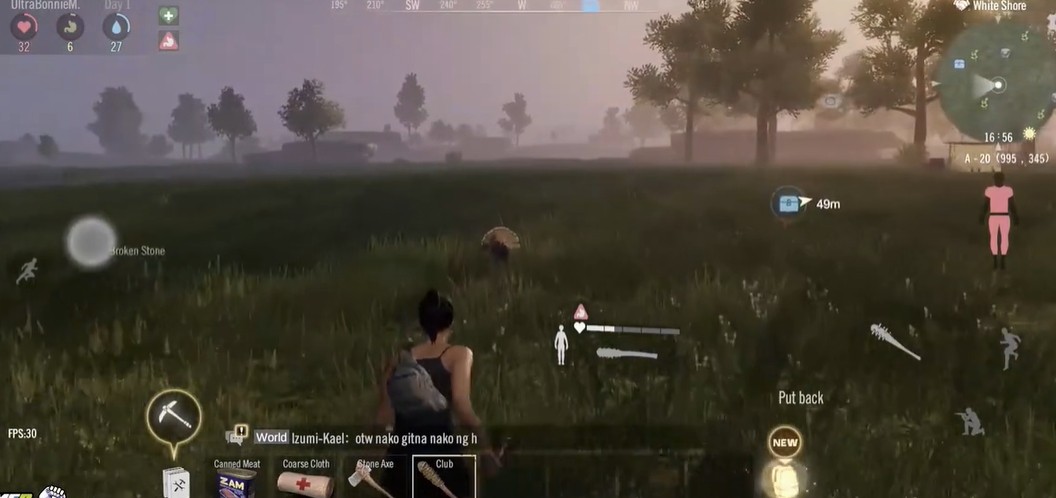 3、玩家可以使用斧子砍树来获得木材,帮助自己制作工具;