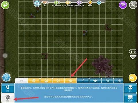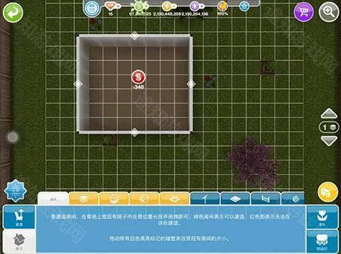 7、在格子上长按并拖拽出你需要的房间大小即可,建造好房间大小后你还可以在商店中购买各种装饰品装修房间