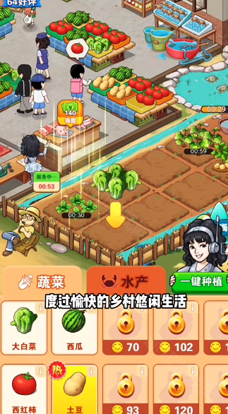 1、种植各种蔬菜和水果提供给顾客,在不断的销售中,赚取更多的金币。