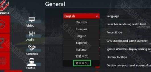 游戏主界面左边的齿轮按钮找到General选项,之后点击Language,在弹出的窗口选择简体中文。