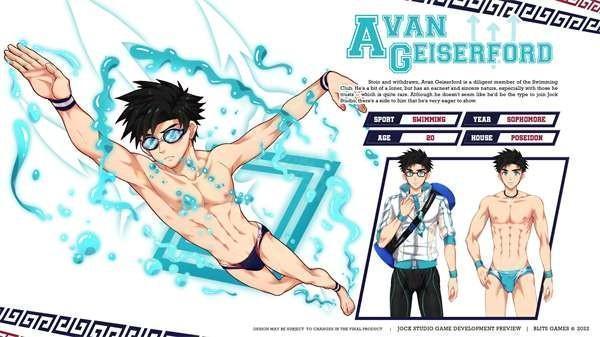 阿万·盖瑟福德 (Avan Geiserford)坚忍不拔,看似令人生畏,他担任奥林巴斯大学学生会主席,对于一名同时也是游泳队成员的二年级学生来说,这是一项令人印象深刻的成就。虽然埃文倾向于独来独往,但他对他信任的人却有着真诚的态度。然而,他渴望展示他有趣的一面,这导致他加入了像 Jock Studio 这样的俱乐部。