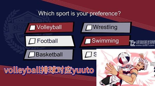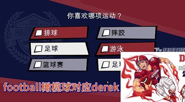 2、选择喜欢的运动,每种选项对应一个攻略对象,足球汉化有误,应该是橄榄球。