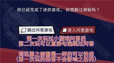 1、第一次玩过小游戏问答后,第二次玩可以直接勾选跳过问答。到这里之前都是一样的,可以快进(第—次玩的回答不会影响之后的)。