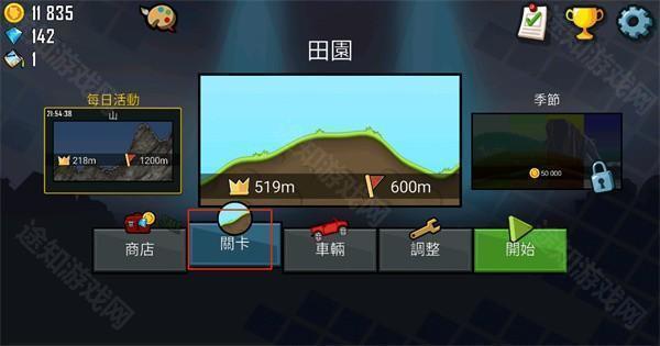 1、双击打开登山赛车1的老旧版本后,玩家得挑选关卡来开展闯关挑战;