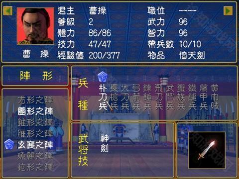 1、曹操(1城8将)是本人玩三国群英传时最爱玩的一个阵营