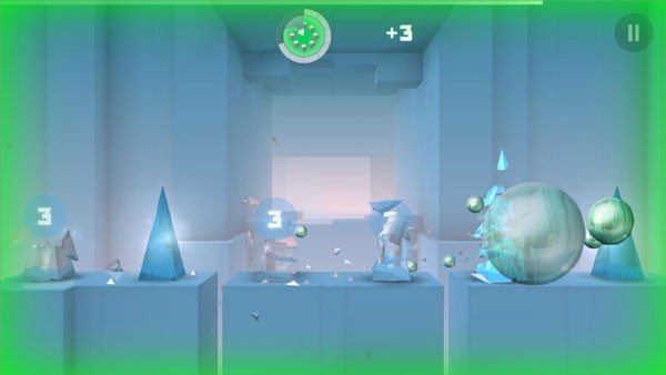 1这款游戏采用第一人称视角,玩家将在异度空间中飞行,需要通过不断投掷具有金属质感的弹珠来击碎阻挡前进的玻璃;由于命中率并非考核的核心,所以命中的难度设定得并不高。