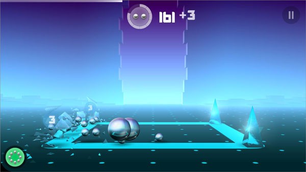 3、游戏里存在蓝色锥形、紫色菱形这类玻璃体,玩家打碎它们就能得到数量不等的弹珠;