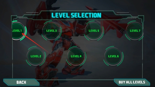 2进入关卡选择页面后,找到并点击LEVEL1对应的第一关选项,确认进入该关卡以开启战斗挑战,完成关卡的选定操作。