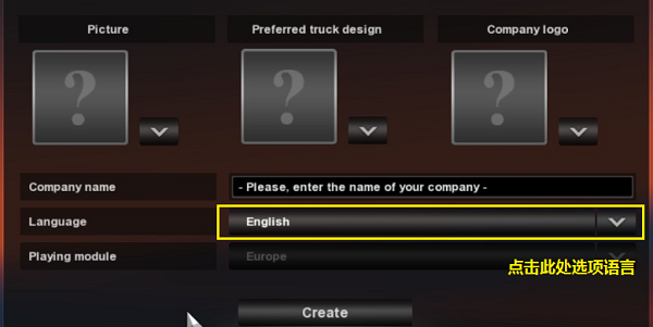 1、先打开游戏,进入界面时会弹出图中的菜单,此时选中“language”选项