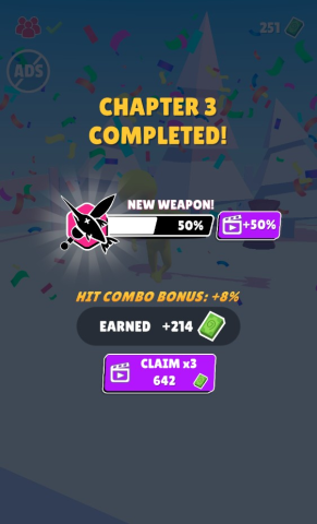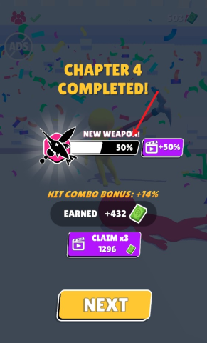 1玩家每成功闯过一关,就能让进度条向前推进,离解锁新武器的目标更近一步。