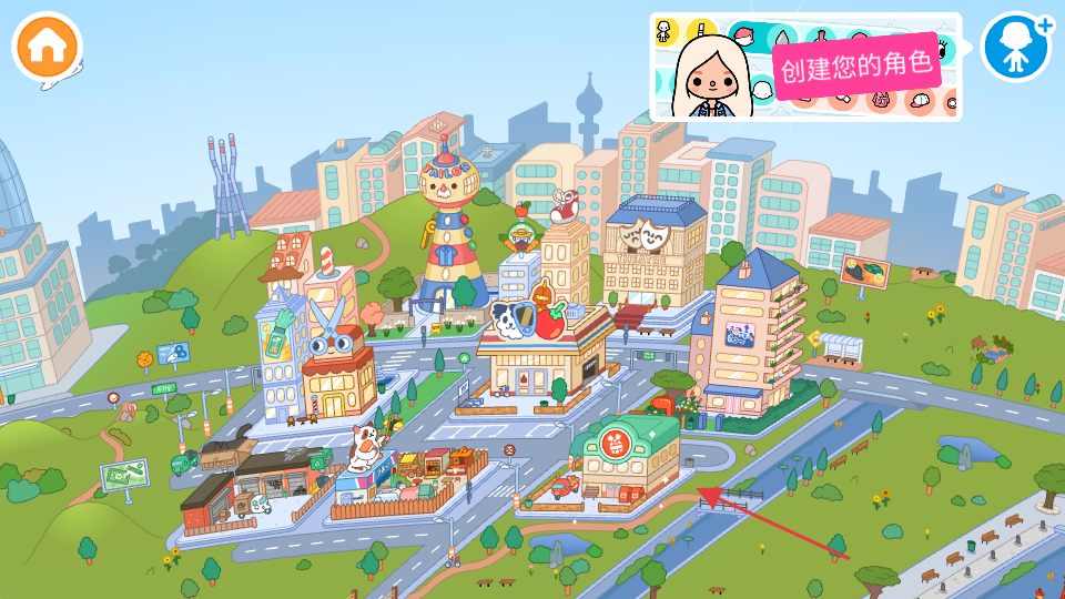 1、点击游戏标题页上的蓝色播放按钮,即可进入《托卡生活童真世界》。