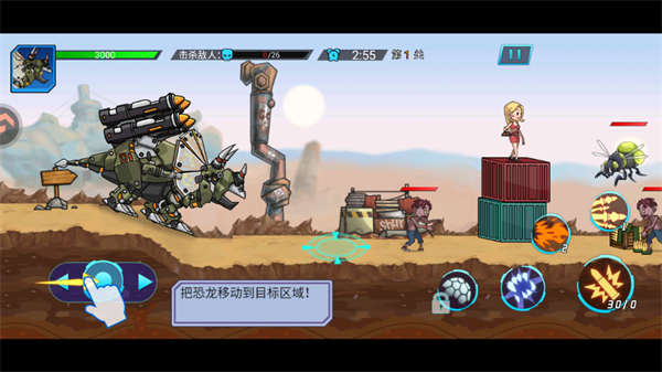 优先攻击血量较低的敌人,快速的清理杂兵后,集中火力应对高攻防的精英机械恐龙,提升战斗效率。
