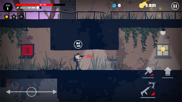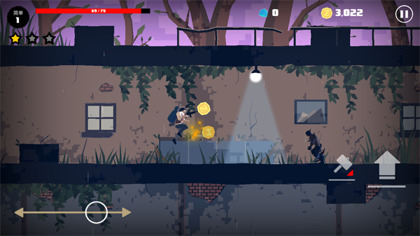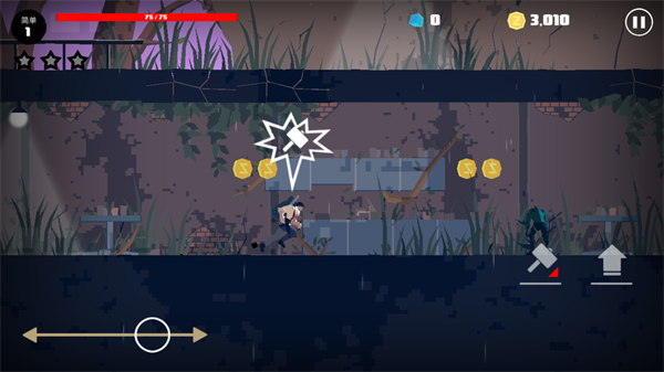 2、左侧可以控制角色的左右移动,右侧则是攻击和跳跃按钮。