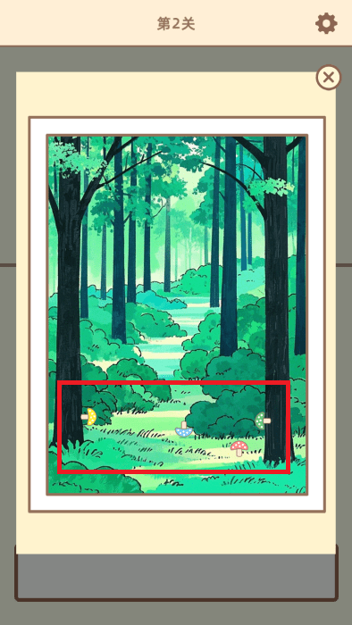 接下来点开那幅森林主题的画,看到画面里那些朝向不同、颜色各异的蘑菇了吗?它们就是解题的关键。