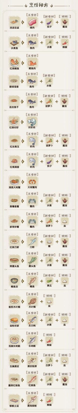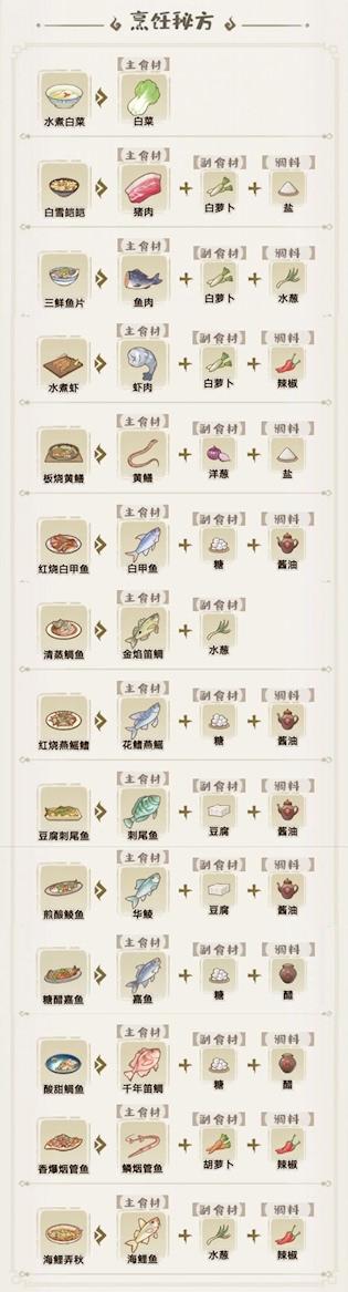 ③鲬鱼汤=鲬鱼+黄瓜+盐(或鲬鱼+2盐)