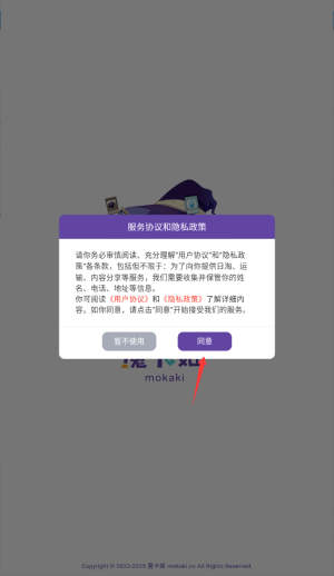 1、首次打开应用程序时,需要阅读并同意用户服务协议与隐私条款,点击确认按钮后即可进入主界面。