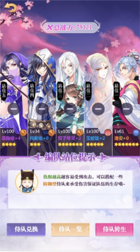 3、侍从(1级解锁):在侍从界面中,可通过升级、升星、技能点选、血脉关联、装备进阶、封印、九字真言等途径对侍从进行培养,以此增强侍从的战斗能力,助力在战斗中获胜。