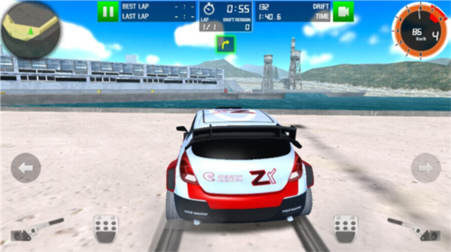 4、按住屏幕最下端可让车辆加速,两旁按键则控制车辆倒退,熟悉后能轻松操控。