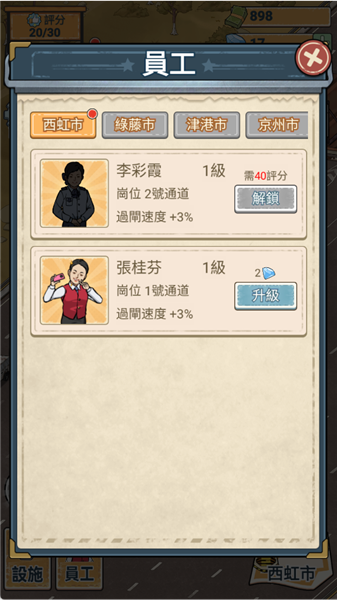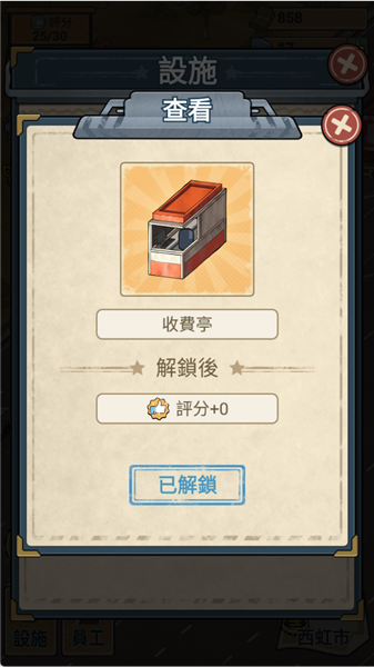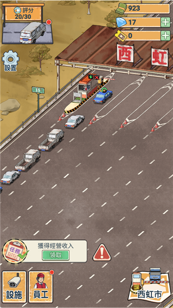 3、随着资金的积累,你能够持续解锁新的车道、增设收费窗口,还能提高收费的效率。建议的升级顺序优先级如下: