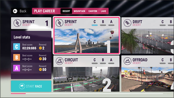 5、特技试炼与计时赛:提供生涯模式外的独立挑战,可收集改装零件,使用专属车辆在特殊场景中突破极限
