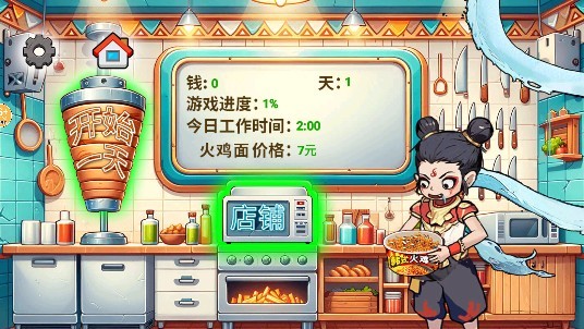 超级火鸡面是一款十分有意思的模拟经营游戏,在游戏里玩家能化身为哪吒,拥有一家专属自己的店铺,这家店专门出售美味的火鸡面,你可以通过给顾客提供美食来获取佣金,玩家每天都得完成一定的营业额才能成功通关,赶紧来挑战吧!