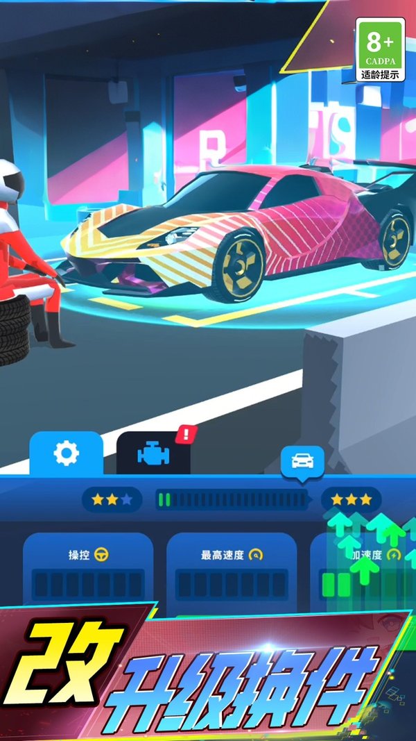 2、可对赛车进行个性化改造,包括更换车身颜色、贴纸、轮毂等,让每辆赛车都独一无二。
