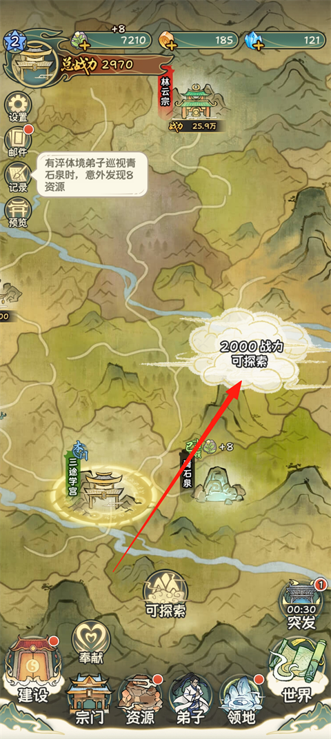 1、玩家进入游戏后,通过招募弟子逐步扩张势力范围,当自身战力达到要求时,便能对目标区域发起攻占行动。