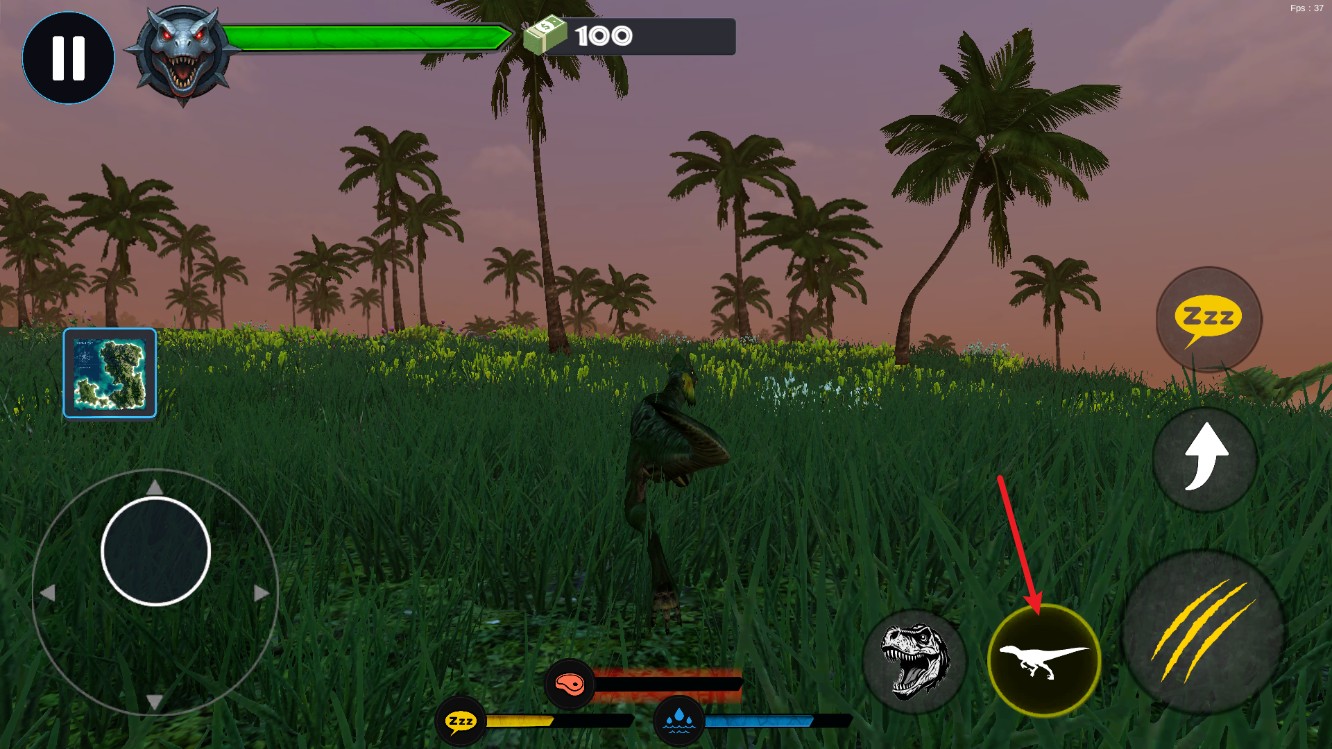 3、点击右侧的奔跑按钮,可使恐龙进入加速状态,从而快速到达目标位置。