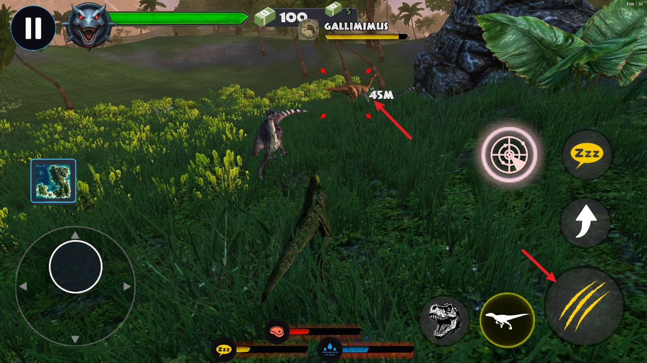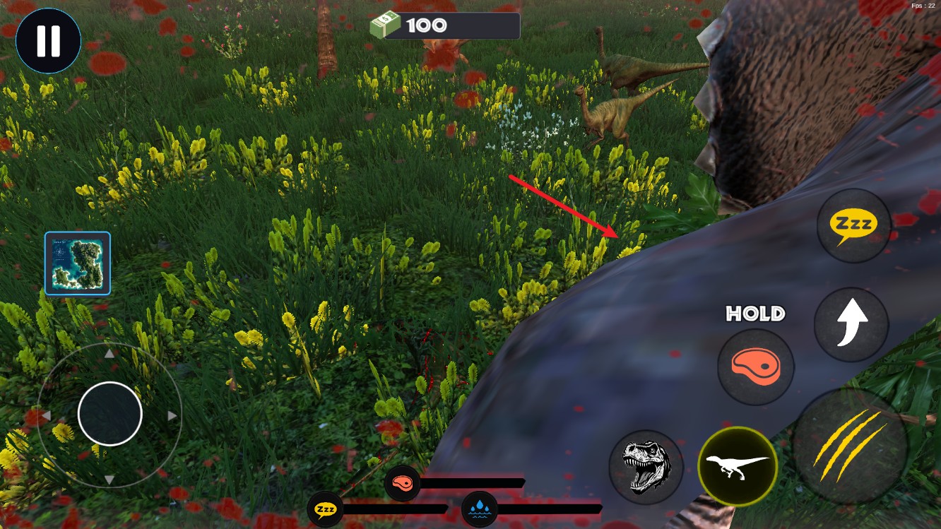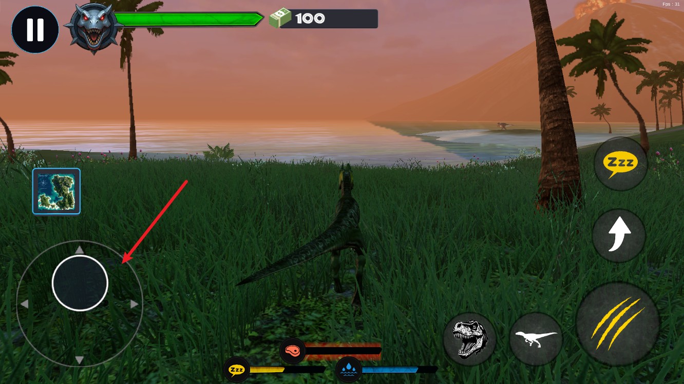2、进入后,通过左侧摇杆操控恐龙移动,灵活调整其位置以探索周边环境。