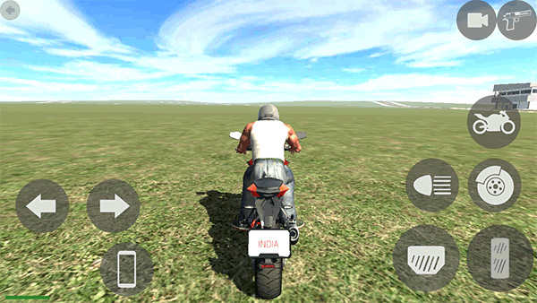 3、右下角长条为开动摩托车的按键,左侧圆圈可作方向盘使用,控制方向的同时还能压弯。