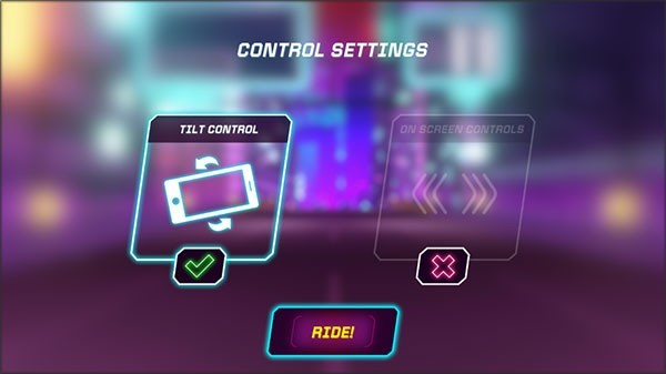 1、完成霓虹骑士的安装后,进入游戏界面选择你偏好的驾驶模式,即可开启这段充满刺激感的旅程。