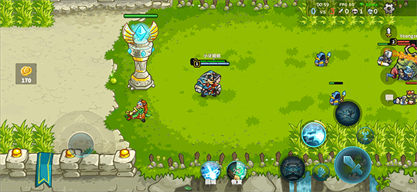 游戏采用横向地图单路对抗模式,玩家需要与队友配合推进兵线,摧毁敌方防御塔,最终攻破敌方基地取得胜利。
