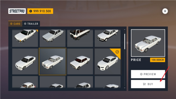 1、首先在主界面找到并进入车库,里面陈列着多款可供选择的汽车,未解锁的车型需要进行购买操作才能使用。
