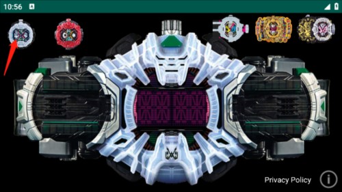 1、打开这个游戏模拟器后,能看到正中间的白色时空驱动器,以及它上方左右两侧的驾驭表头。驱动器的左右两边都可以插入表头,首先点击左上方的白色Zi-O驾驭表头。