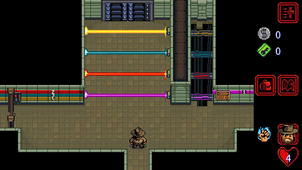 9、打开当前房间后进入新的房间,需要找到分布在不同位置的开关,以关闭激光防护网。