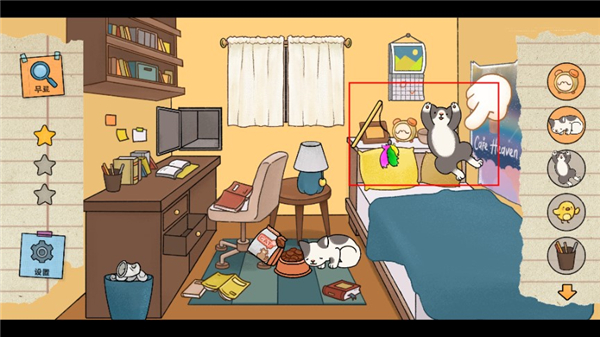 5、右侧列有需要寻找的猫咪与物品,只有将所有目标全部找齐,方可达成通关条件,完成相应任务。