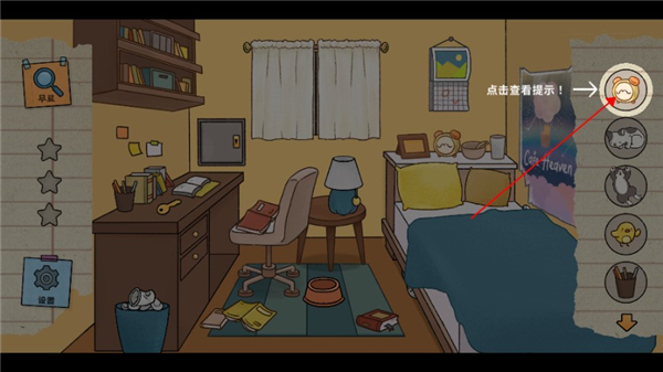3、右侧列有需要寻找的猫咪与物品,点击对应条目即可查看提示,助力完成寻找任务。