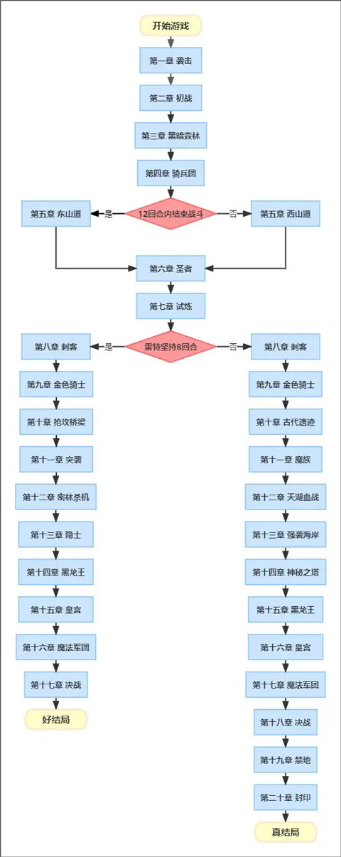 需要注意的是,在第8和第9关,两种分支的展示是完全相同的。因此,要确定游戏结局的真假,需要进行到第10关才能得知。