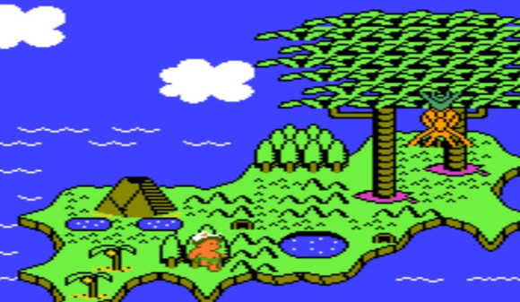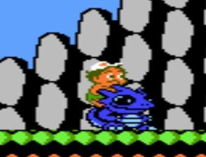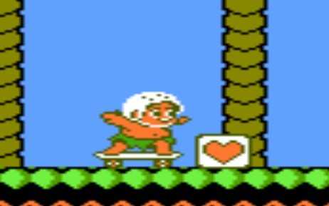 2. 滑板:当主角装备石斧时,特定固定地点原本放置石斧的卵中物品会变为滑板。主角踩着滑板移动速度加快,按下方向键后能够减速,然而无法停止或后退。一旦滑板碰到敌人,便会即刻消失。若主角踩着滑板抵达关卡终点,滑板会消失,同时主角可获得2000分奖励。此外,滑板不能放置到物品储备栏中。