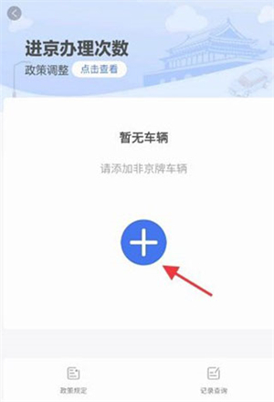 5、进入进京证办理, 点击加号填写车辆信息,申请办理。